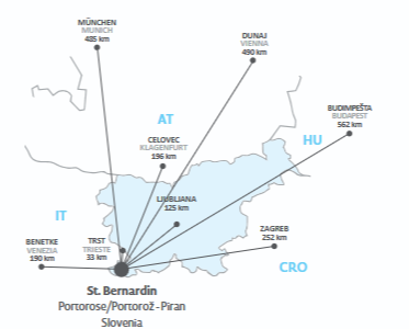 Easily accessible by car from Slovenia, Italy, Croatia, Austria. Distance from larger cities: